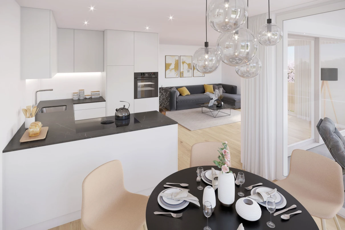In einem stilvollen Anbau an ein früheres Dorfrestaurant entsteht diese moderne 4.5-Zimmer-Wohnung. Ein gelungener Mix aus ländlichem Charakter und zeitgemässem Wohnkomfort.