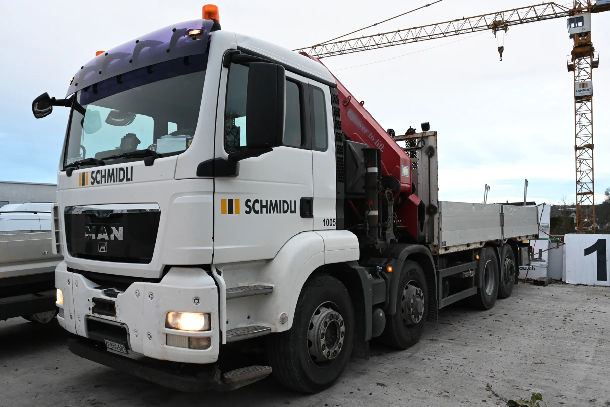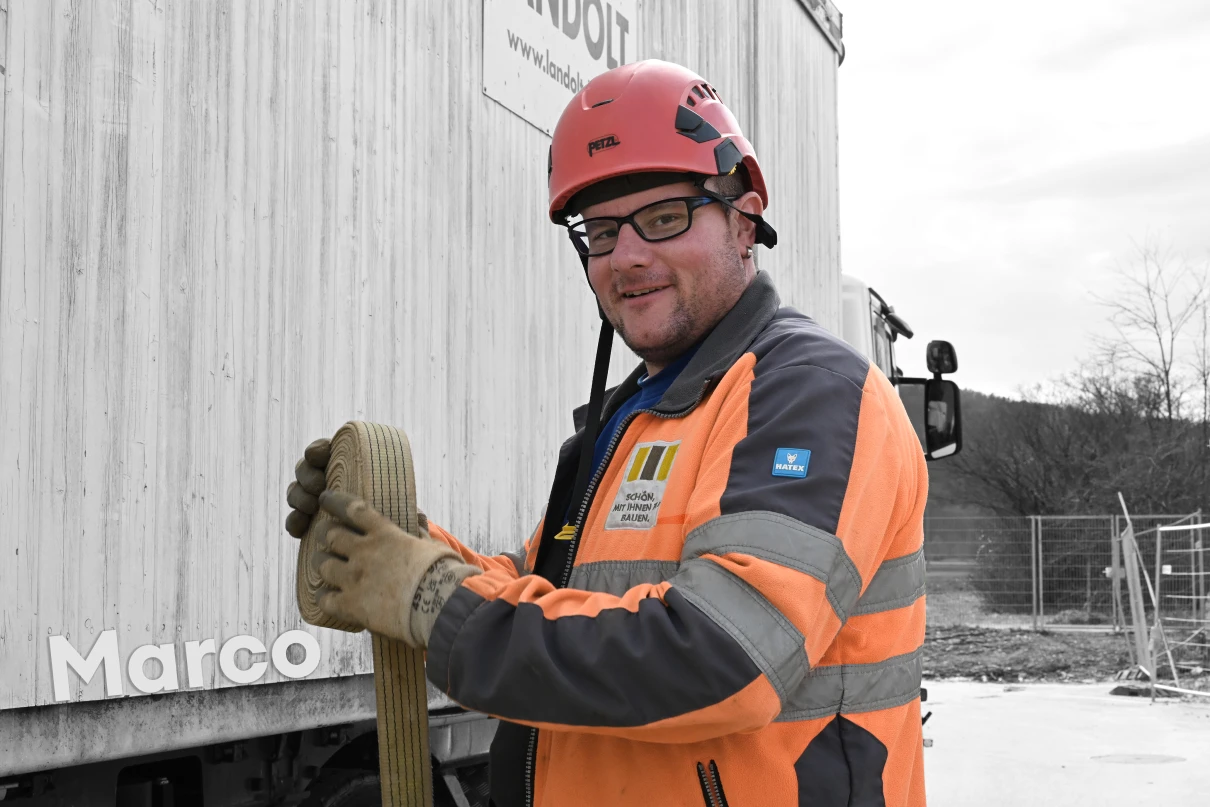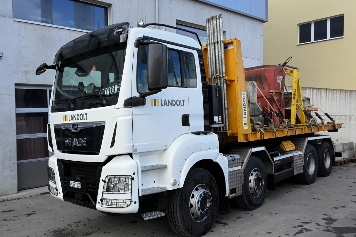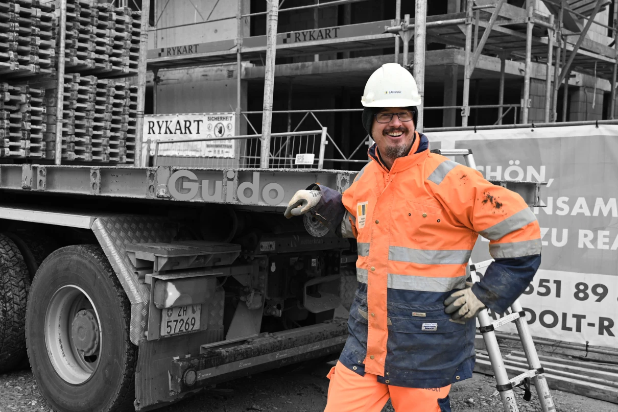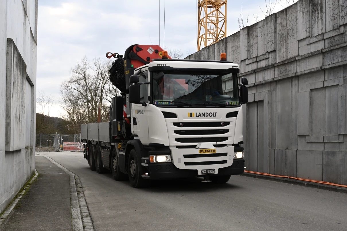 Sieben Chauffeure und deren Lastwagen sind täglich für unsere Baustellen im Einsatz. Unser Disponent Oliver regelt die Transporte und stellt sicher, dass die Fuhren pünktlich auf der Baustelle sind.