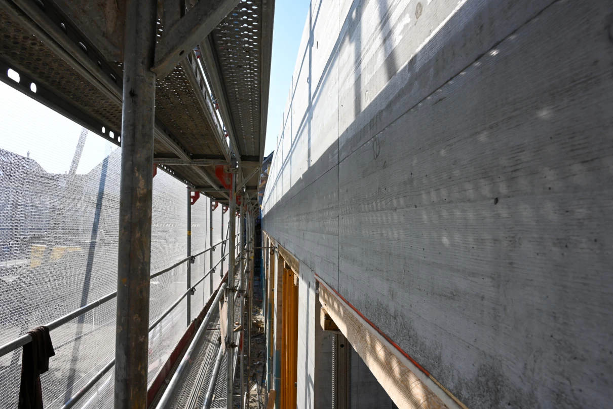 Über dem Erdgeschoss entstehen auf drei Etagen insgesamt 16 moderne Mietwohnungen. Im Erdgeschoss sind attraktive Verkaufsflächen für Migros und Denner vorgesehen. Der Neubau wird in einer Kombination aus Stahlbeton und Mauerwerk realisiert, wobei die Erdgeschossfassade in hochwertigem Sichtbeton ausgeführt wird und dem Gebäude einen markanten Charakter verleiht.