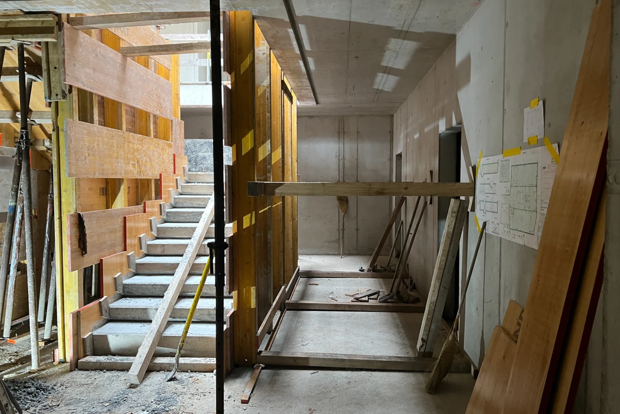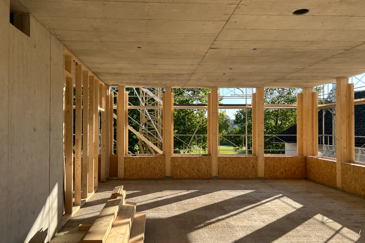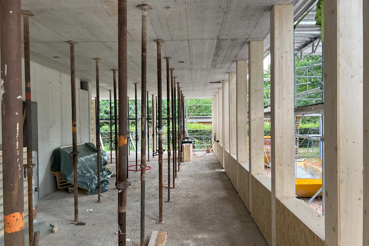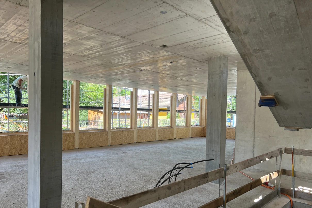 Ende Juli 2023 wurde die Erste Etappe, Erweiterungsbau des Schulhauses Kreuzgut in Schaffhausen in einer Skelettbauweise abgeschlossen.