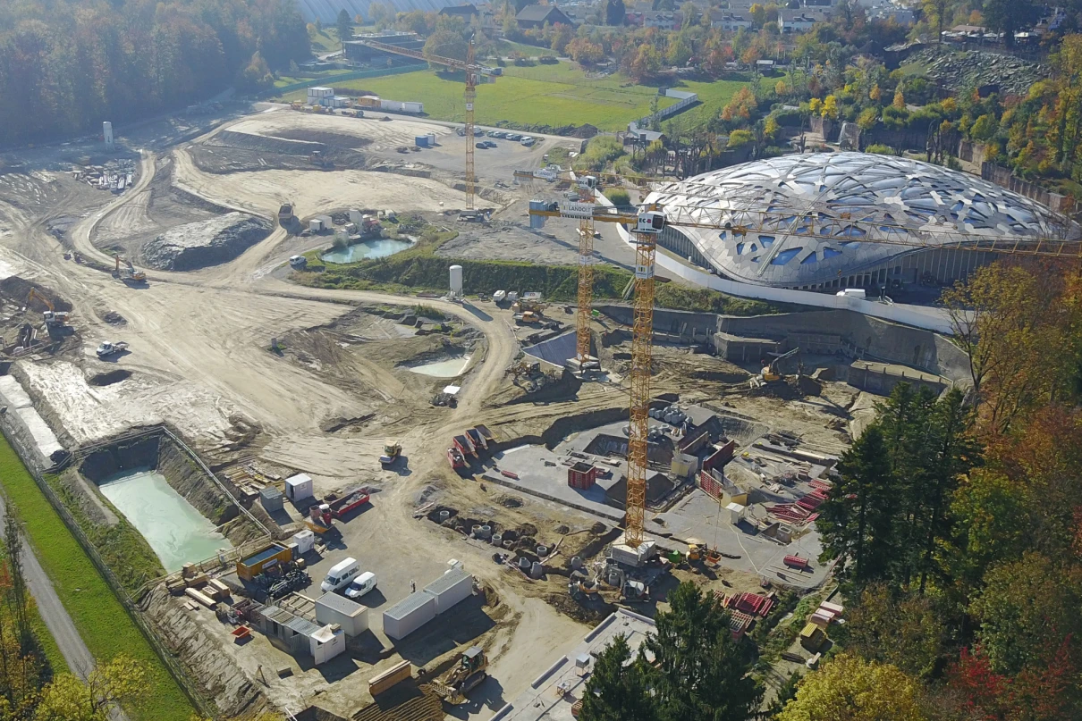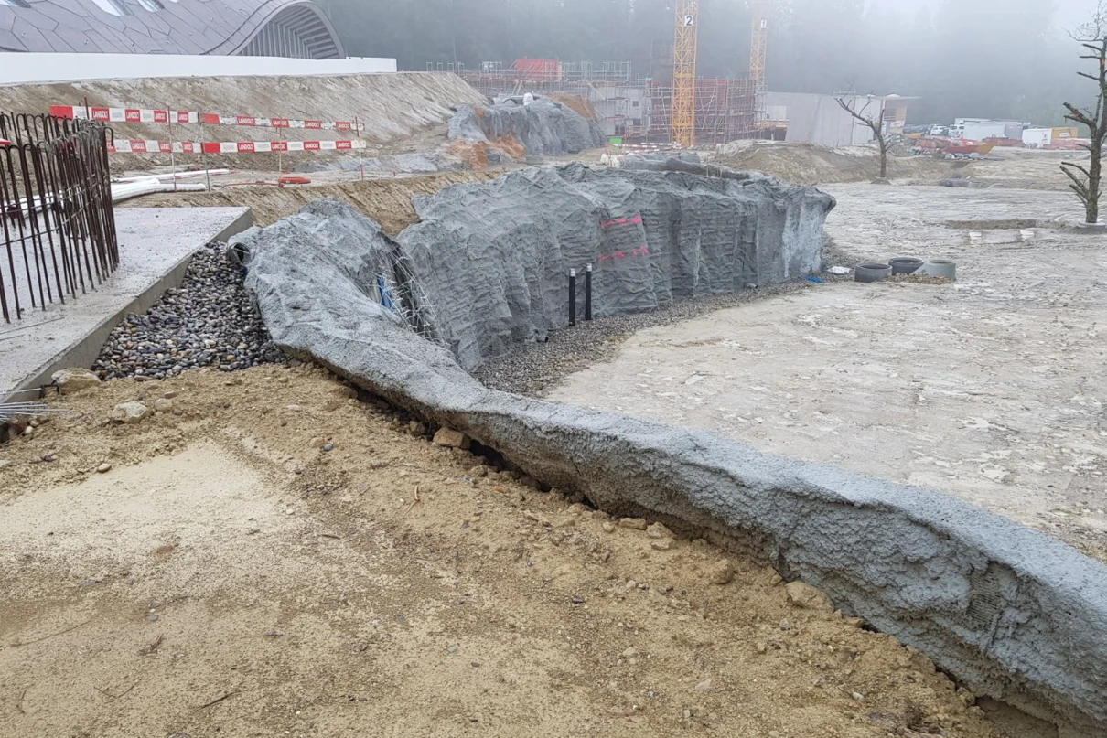 Der Rohbau dieses besonderen Ortes besteht aus einer soliden Stahlbetonkonstruktion. Hohe Wandscheiben wurden betoniert, einige von ihnen mit einer markanten Neigung, um im Endzustand die Form von Kunstfelsen anzunehmen – eine natürliche Umgebung für unsere tierischen Freunde.