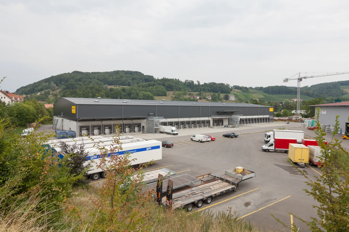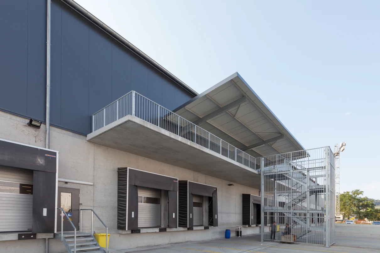 Zweistöckige Lager- und Umschlaghalle mit Bürogebäude für die Post. Die eindrücklichen Abmessungen von 45 x 120 Meter, sowie die hohen Nutzlasten lassen eine Multiple Nutzung zu und können den wechselnden